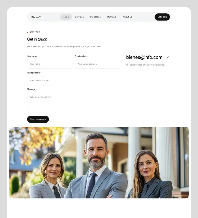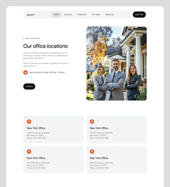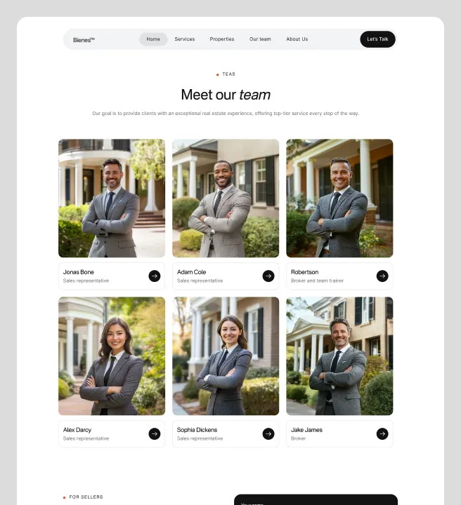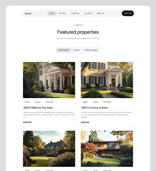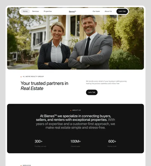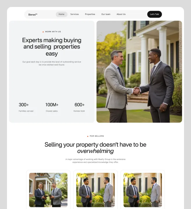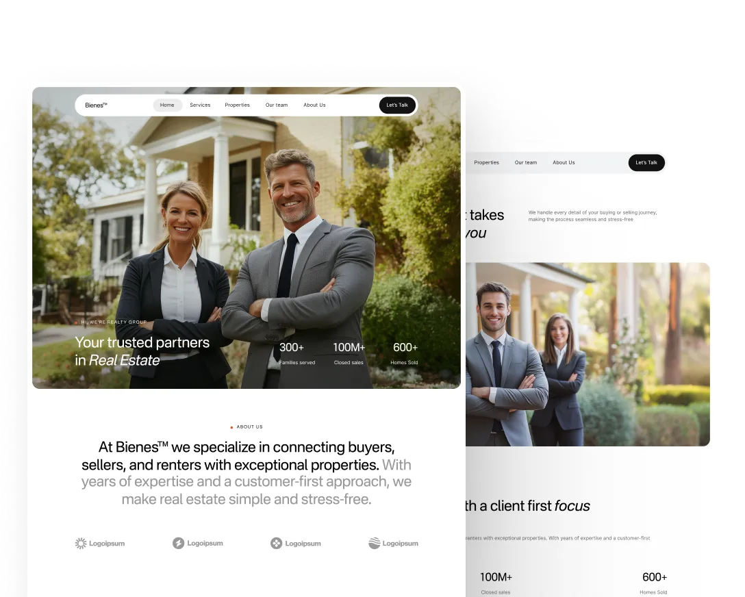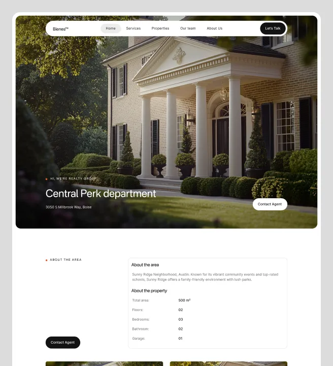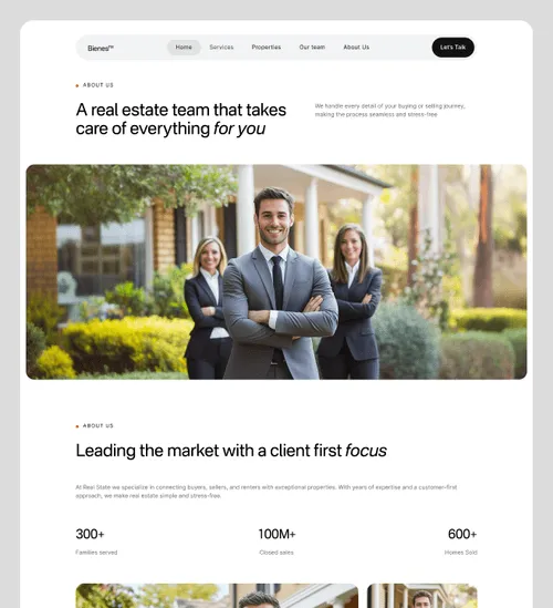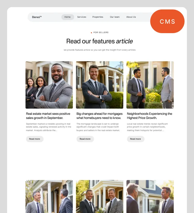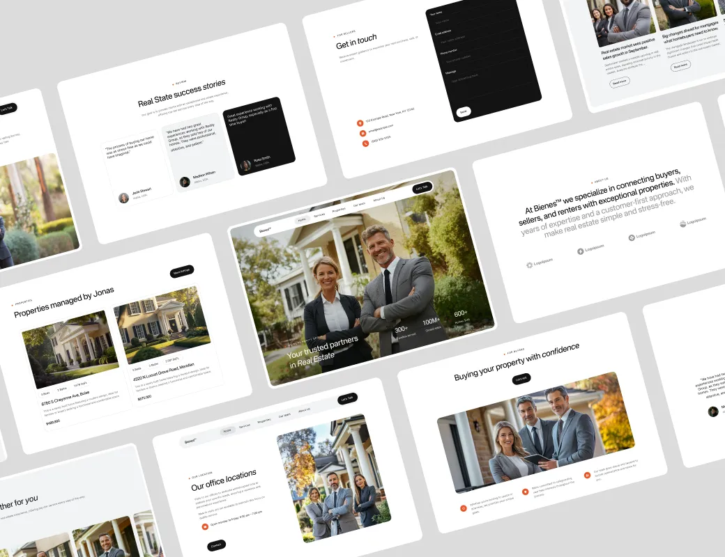 Bienes Webflow Template includes over 12 pages in total, with more than 25 sections.
